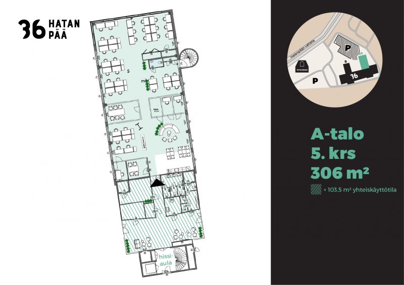 Hatanpään Valtatie 36 eli 36Hatanpää on moderni toimistotalo, jonka palveluihin lukeutuu mm. aulapalvelu, yhteiskäyttöiset neuvottelu- ja saunatilat, lounasravintola ja kuntosali sekä noin 400 pysäköintipaikkaa pysäköintihallissa ja pihalla, ml. asiakaspysäköinti. Kiinteistö sijaitsee Tampereen ydinkeskustan tuntumassa Hatanpäällä. Rautatieasemalle on noin 1 km ja linja-autoasema on kävelymatkan päässä. Lähietäisyydellä myös Kauppakeskus Ratinan ja Koskikeskuksen laajat palvelut.