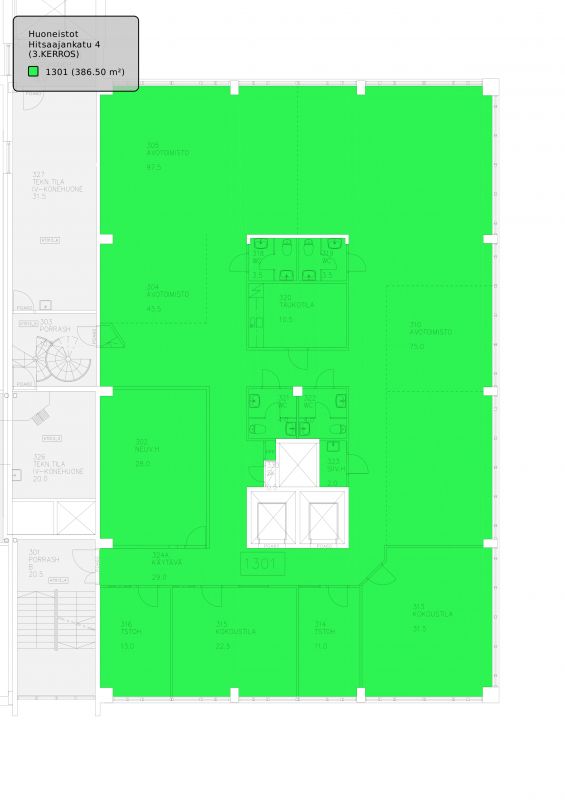 3. kerroksen siisti toimistotila, jossa avotilaa ja huoneita. Kiinteistö sijaitsee hyvien kulkuyhteyksien varrella, Herttoniemen metroaseman läheisyydessä.
