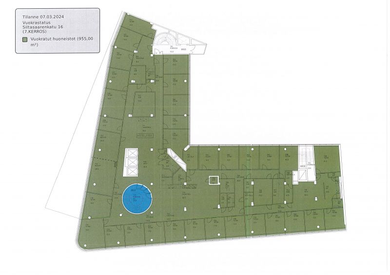 7. kerroksen koko kerroksen toimistokokonaisuus, josta mm. upeat näkymät.