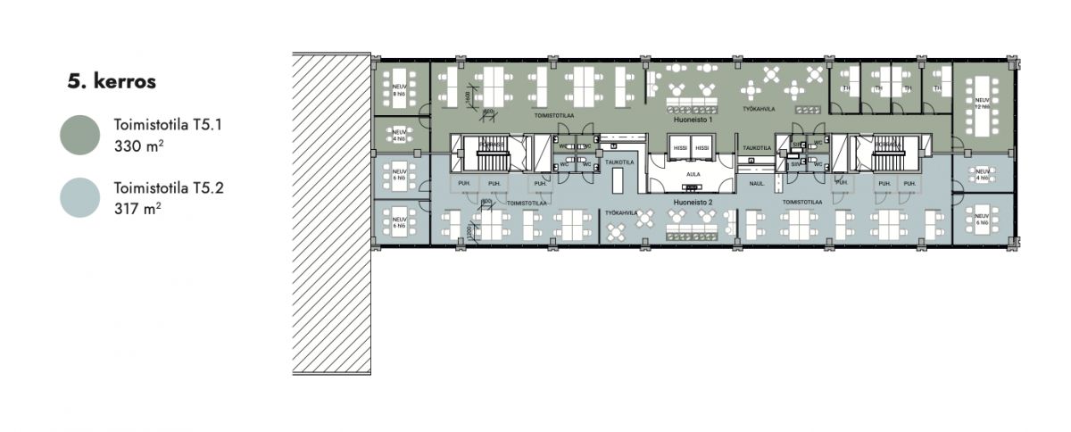 Toimistotilat tehdään loppuun seuraavan vuokralaisen toiveet ja tarpeet huomioiden. Tilat soveltuvat hyvin erilaisiin ratkaisuihin.