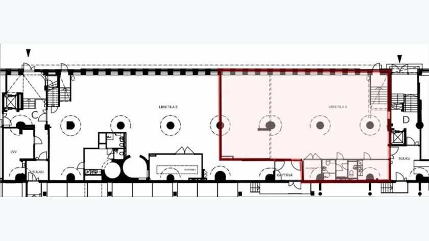 Liiketila ei sovellu ravintola-, kahvila- tai parturikampaamotoimintaan. This premise is not suitable for a restaurant, cafeteria or a barber shop.
