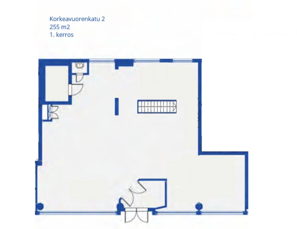 Tämä 255m² tila sijaitsee kiinteistön katutasossa. Tila soveltuu mainiosti niin toimistokäyttöön kuin liiketilaksi. Tilasta on porraskäynti alempaan kerrokseen, jossa liike-, varasto- ja sosiaalitilaa.
