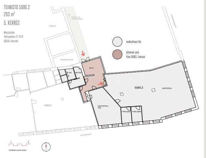 Kiinteistön viidennessä kerroksessa sijaitseva toimistotila mahdollistaa viihtyisän työskentelyn upeine maisemineen Tehtaankadulle. Tilasta löytyy 2 kappaletta työhuoneita, neuvottelutila sekä oma keittiötila ja wc-tilat. Vuokralaisella on yhdistetty aulatila viereisen tilan käyttäjän kanssa. Tilan pinnat on hiljattain remontoitu ja tilasta löytyy myös moderni valaistus.