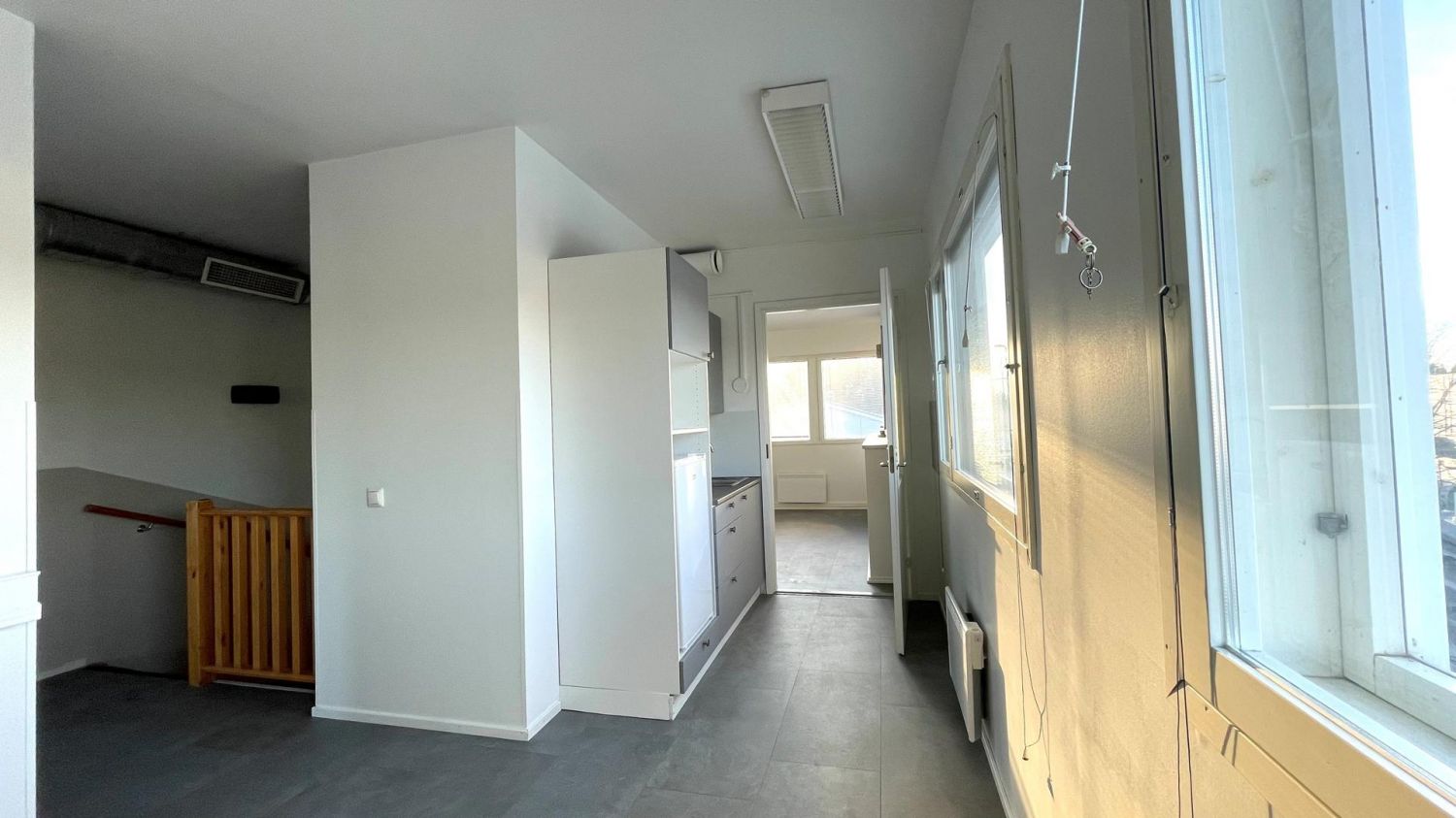 Lisäksi toimistotilaa toisessa kerroksessa, noin 70-80 m2. Suihku ja pukuhuone ensimmäisessä kerroksessa aulan yhteydessä.