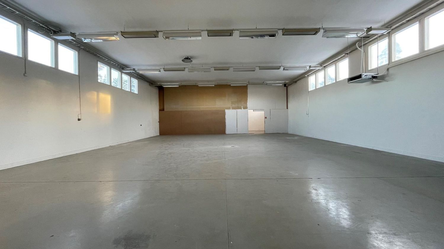 Halliin kulku sekä sisä- että ulkokautta. Käytännöllinen tavaranlastaus ja -purku nosto-oven kautta lastauslaiturilta. Toinen nosto-ovi maantasalla. Hallitila on tällä hetkellä jaettu kahteen osaan kevyellä väliseinällä, joka on purettavissa. Hallin yhteydessä on työtila/toimisto tai pikkuvarasto omalla ilmalämpöpumpulla. Hallissa 3 lämpöpuhallinta, jotka ottavat kaiken hyödyn katon aurinkopaneeleista.