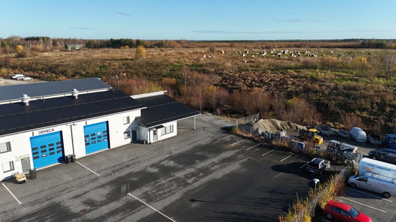 Betonirunkoinen 5 metriä korkea varastohalli huippuimurilla ja isolla lattiakaivolla. Päätyhuoneisto. Tilava katos joka soveltuu myös varastointiin. Iso piha-alue useille autoille tai varastokonteille yms. Toimistotiloissa viilennys. Varaston yhteydessä kolmen huoneen toimistoparvi. Toimistohuoneisiin saa 8-10 työpistettä väljästi. Kuitunetti.