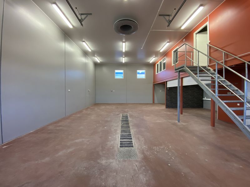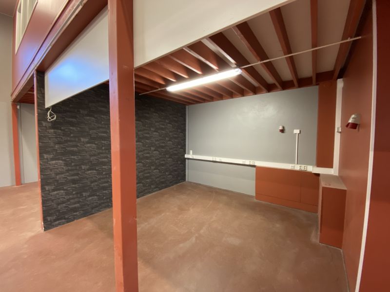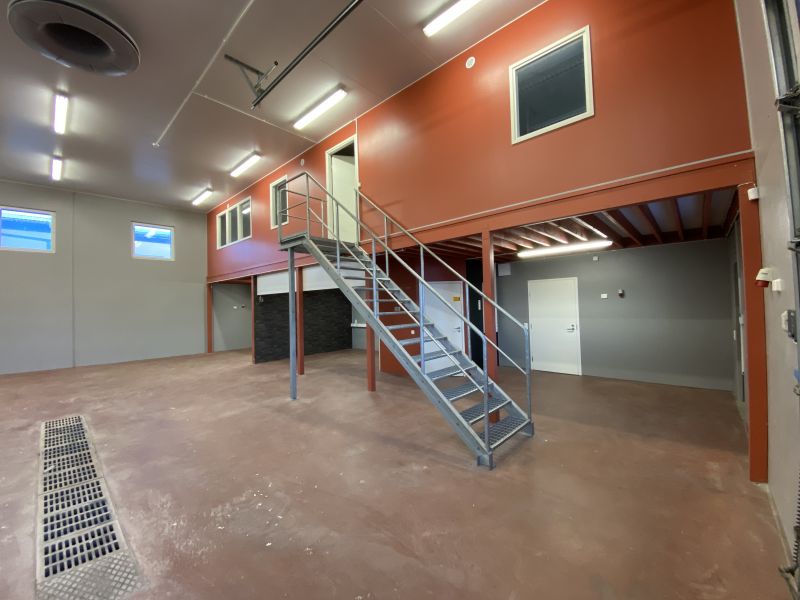 Yli 5 metriä korkea varastotila toimistoparvella. Keittiö ja saunaosasto. Tilava piha yli 10 autolle ja tilaa myös konteille!