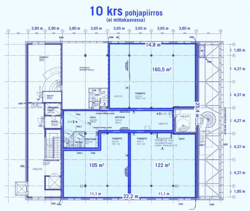 Tällä hetkellä 10-kerros on valmistunut, ja siellä vuokrattavana 105m2 avotoimisto.