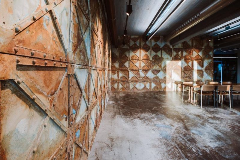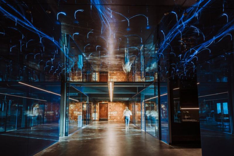 Kiinteistön valtameriteemaisen Big Blue -kokonaisuuden ovat suunnitelleet kuvataiteilija Mauri Kosonen ja arkkitehti Heimo Paukkunen.
