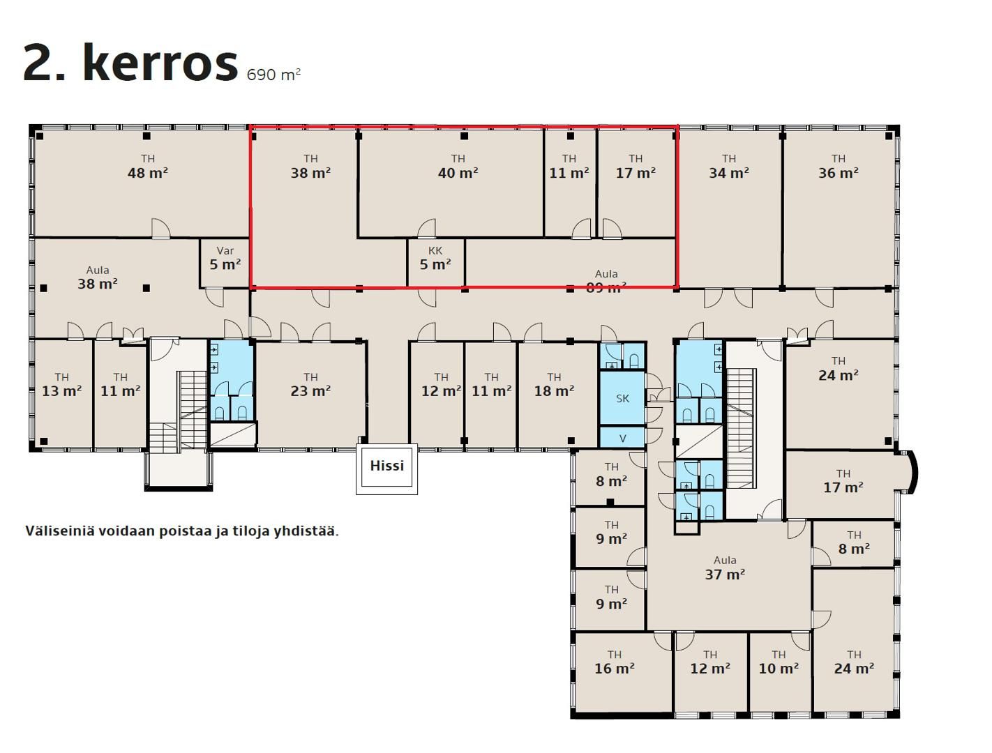 Vaihtoehto #2 toimistokokonaisuus n. 137 m².