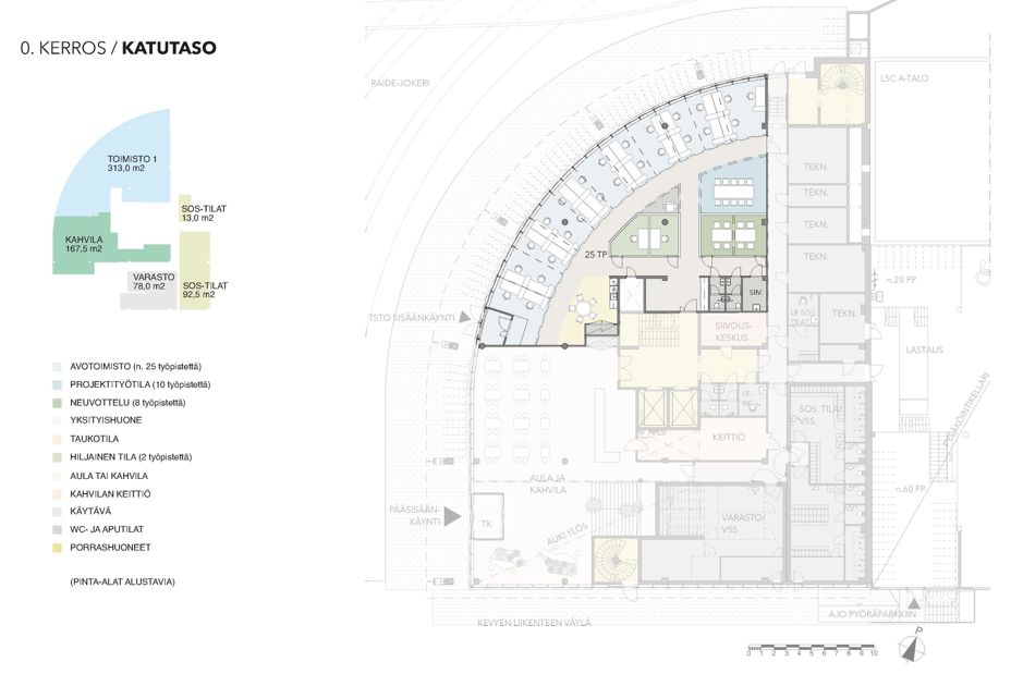 Tila tehdään valmiiksi seuraavan vuokralaisen toiveiden ja tarpeiden mukaan. Tilaan on mahdollista tehdä huoneita hyvin tehokkaasti.