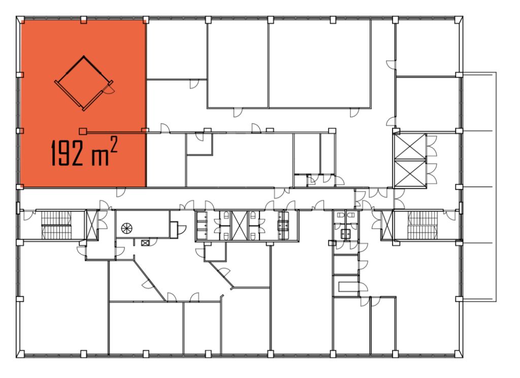 Tämä 192m² toimisto sijaitsee kiinteistön 2. kerroksessa. Tilassa on oma iso keittiö, ja käytävällä sijaitsevat wc:t ovat yhteiskäyttöiset viereisten tilojen kanssa. Kerrokseen on tavarahissiyhteys.