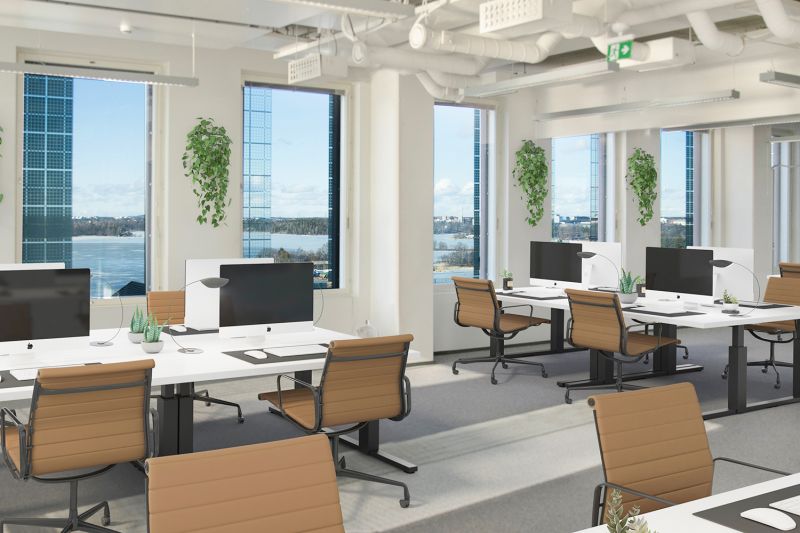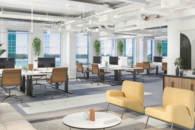 Upeaa kahdeksannen kerroksen toimitilaa näkyvällä paikalla Technopoliksen Ruoholahti 3-rakennuksesta.