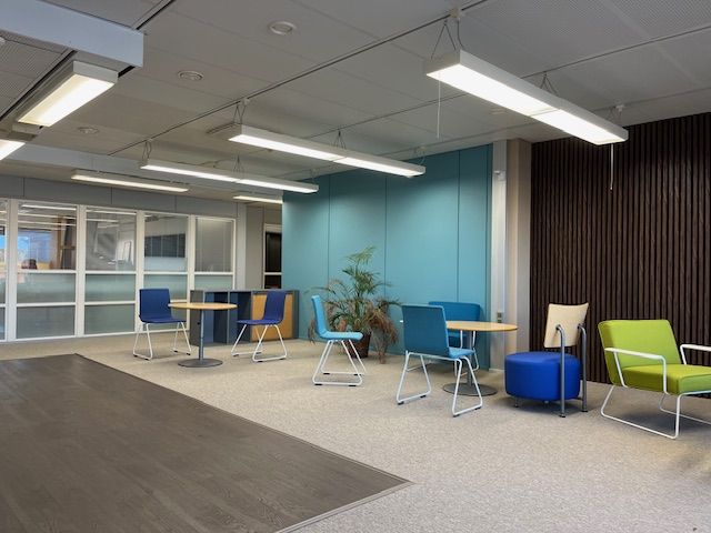Pääosin työhuoneisiin jaettua työtilaa, useita neuvottelu- ryhmätyöhuoneista.