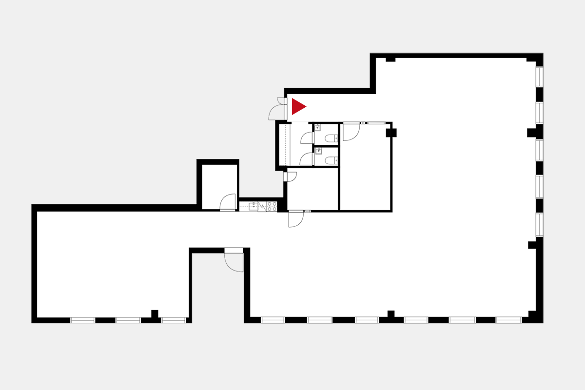 Muuttovalmis toisen kerroksen monitilatoimisto. Tila sijaitsee aulan ja edustusravintolan läheisyydessä.