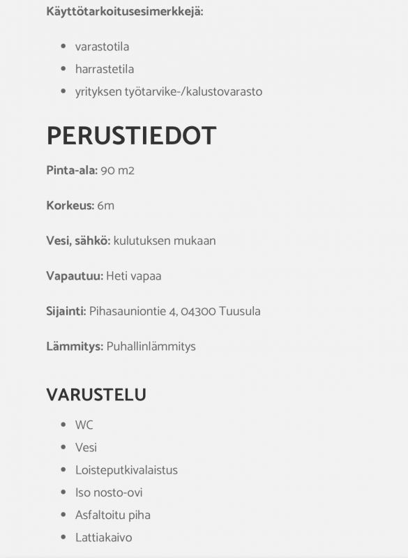 Vuokrataan tuotantotilat, varastotilat, työtilat, autotalli/-hallitilat - Tuusula