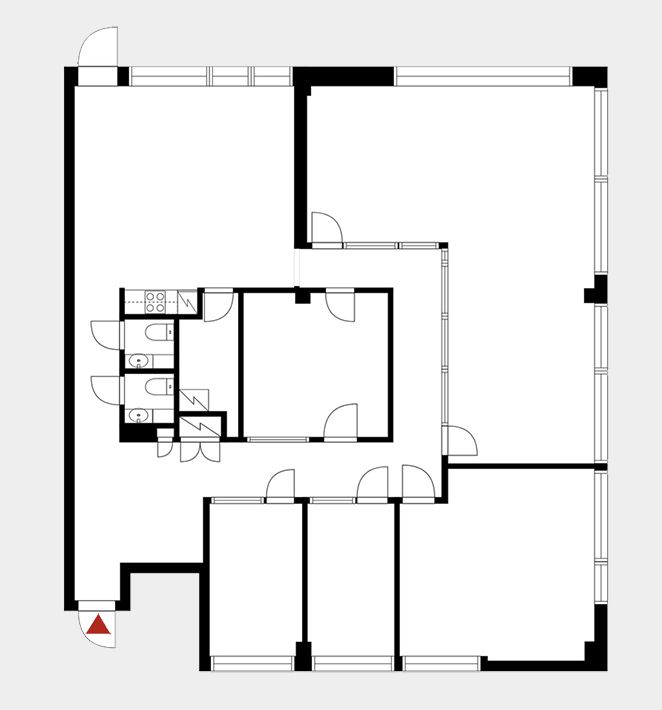 Tämä 215m2 toimistotila sijaitsee kiinteistön 4. kerroksessa. Toimistossa on huoneita, avotilaa, oma keittiöpiste ja wc.