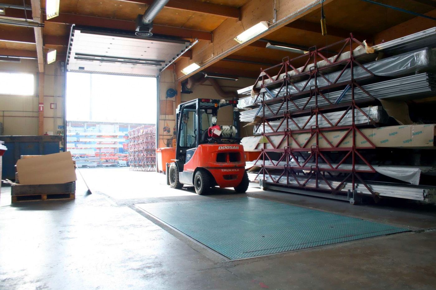 Tilan vapaa korkeus on 4,2 m, lattia on betonia. Ulos johtaa kaksi nosto-ovea mitoiltaan 3,00 m (leveys) x 3,86 m (korkeus) ja yksi nosto-ovi kooltaan 4,00 m (leveys) x 4,50 m (korkeus). Käytössä on pöytänosturi (8 tn). Ei lastauslaituria. Piha-alue on aidattu.