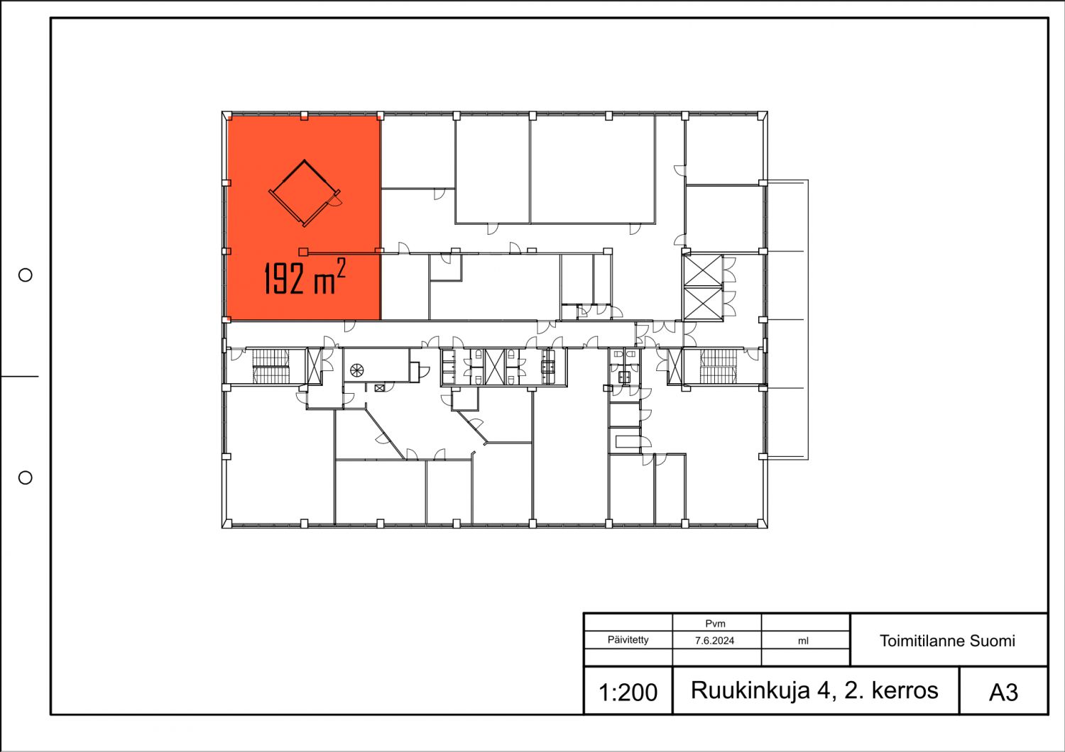 Vuokrataan toimistotila 192 m2 hissillisen rakennuksen toisessa kerroksessa. Tilassa on oma iso keittiö, wc:t yhteisellä käytävällä.