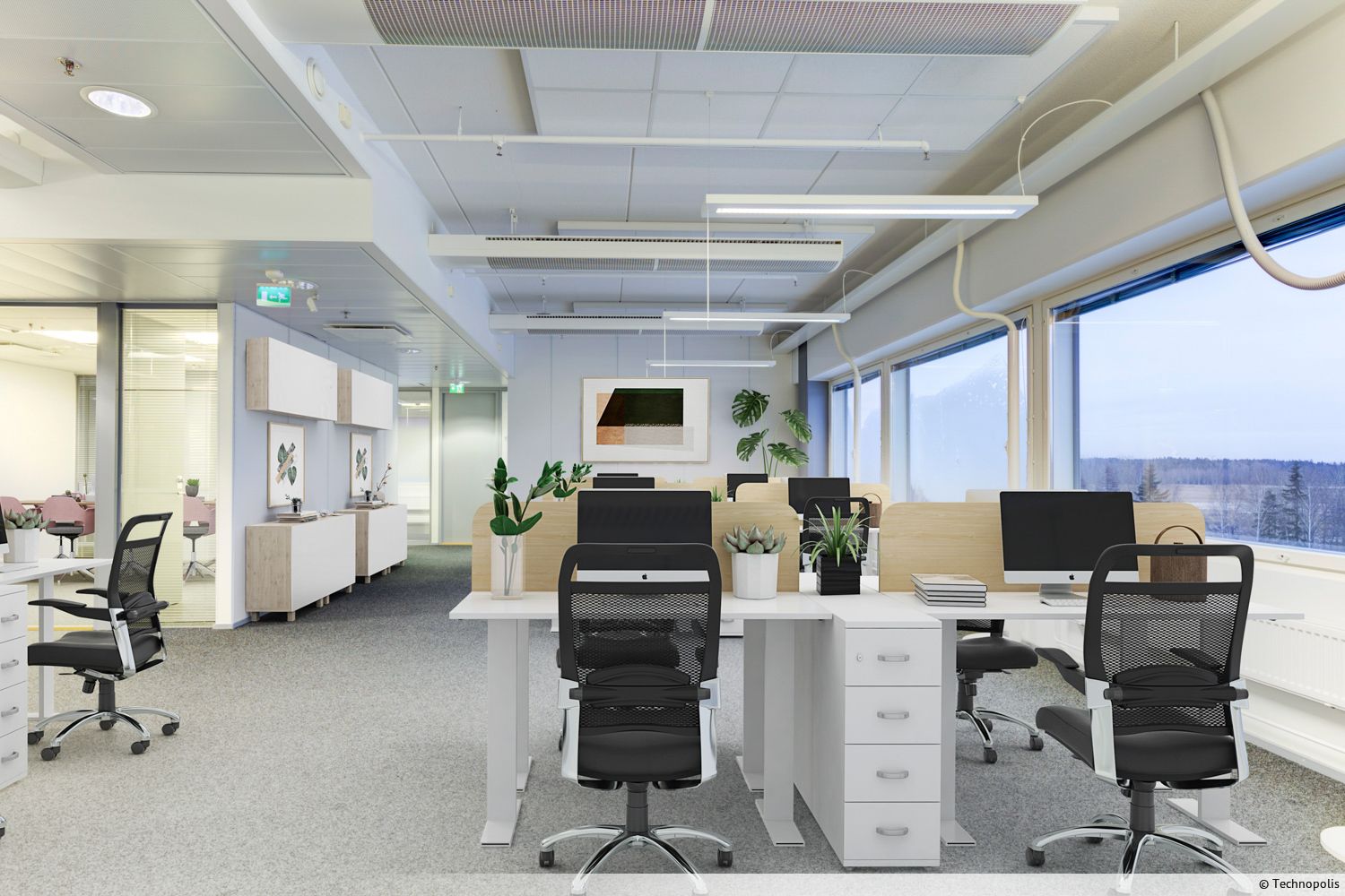 Vuokrataan Technopolis Otaniemessä Espoossa muuttovalmis 215 m² monitilatoimisto Innopoli 3 C-talon neljännestä kerroksesta. Toimistossa on useita huoneita ja neuvottelutiloja sekä omat keittiö- ja wc-tilat. Toimitilan ilmastointi tarjoaa miellyttävän lämpötilan kaikkina vuodenaikoina, ja ikkunoista avautuu vehreät näkymät Otaniemen luonnonsuojelualueelle. Toimitilasta on saatavilla valmis sovituskuva, josta näkee tarkemman työpistemäärän ja tilan toiminnot.