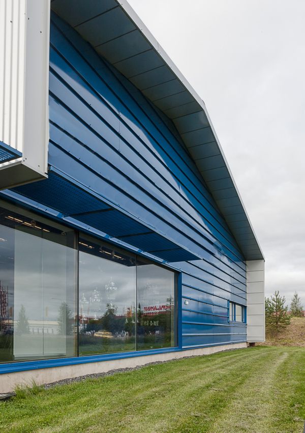 Halliosa on puurunkoinen ja julkisivumateriaalina peltiverhous.