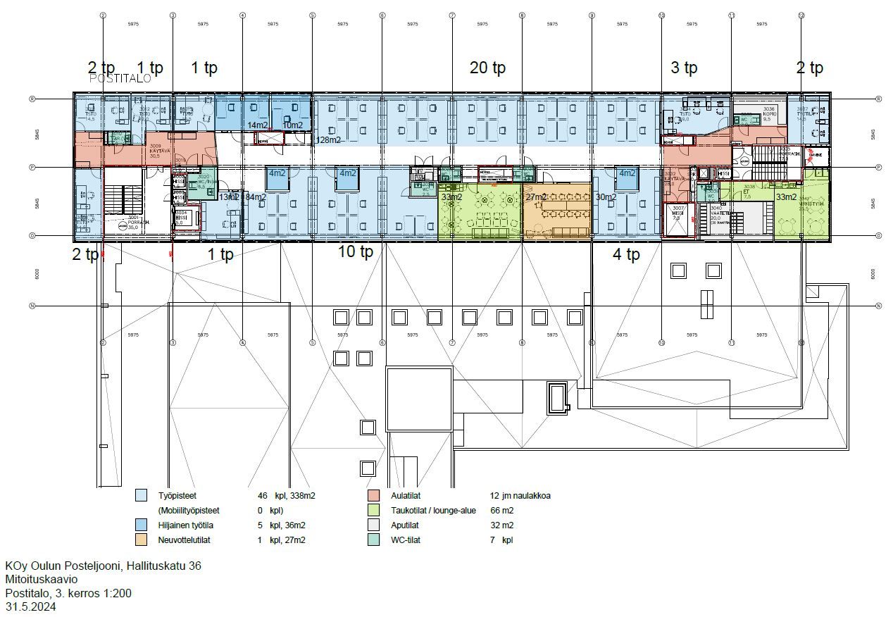 Postitalon 3. kerroksen tilan pinta-ala on n. 687,5 m2