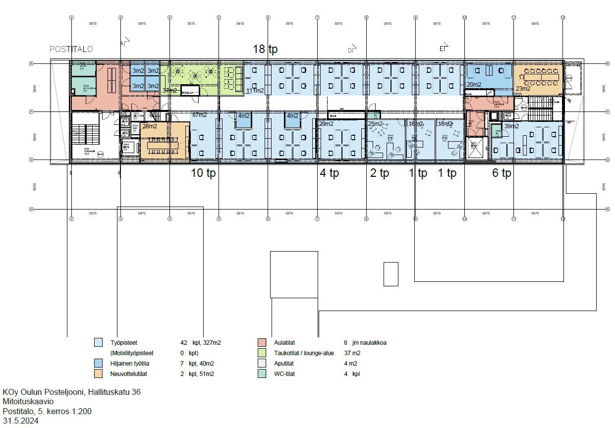 Postitalon 5. kerroksen tilan pinta-ala on n. 626 m2