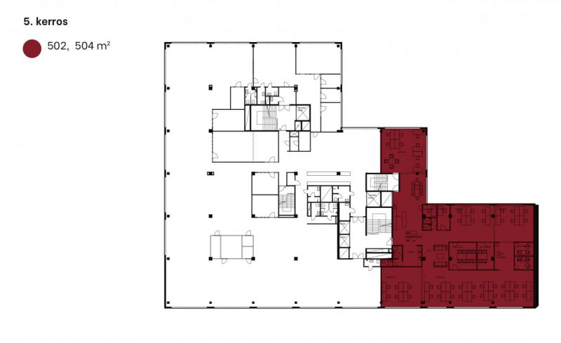 Vuokrataan viidennen kerroksen 504m2 toimistotila, joka on muokattavissa juuri sellaiseksi että se palvelee yrityksen tarpeita optimaalisesti. Modernit puitteet klassikkotalossa ovat inspiroiva työympäristö, niin työntekijöille kuin asiakkaillekin. Kiinteistössä on Fazerin lounasravintola- ja kahvilakonsepti Ravintola Kravattitehdas. Talossa on eri kokoisia kokoustiloja ja auditorio (60-70 hlö) uudistettu 2018. Kiinteistössä myös sähköauton latauspiste. Tulossa lainapolkupyöriä. Autopaikkoja on yhteensä 176. Naapuritontilla on Q-Park Vallila, jossa on 700 pysäköintipaikkaa Julkisen liikenteen osalta raitiovaunu- ja bussipysäkkejä löytyy muutaman sadan metrin päästä, lähimmät raideliikenteen asemat puolestaan Pasilasta (juna) ja Sörnäisistä (metro).