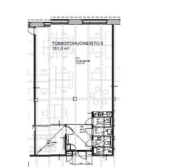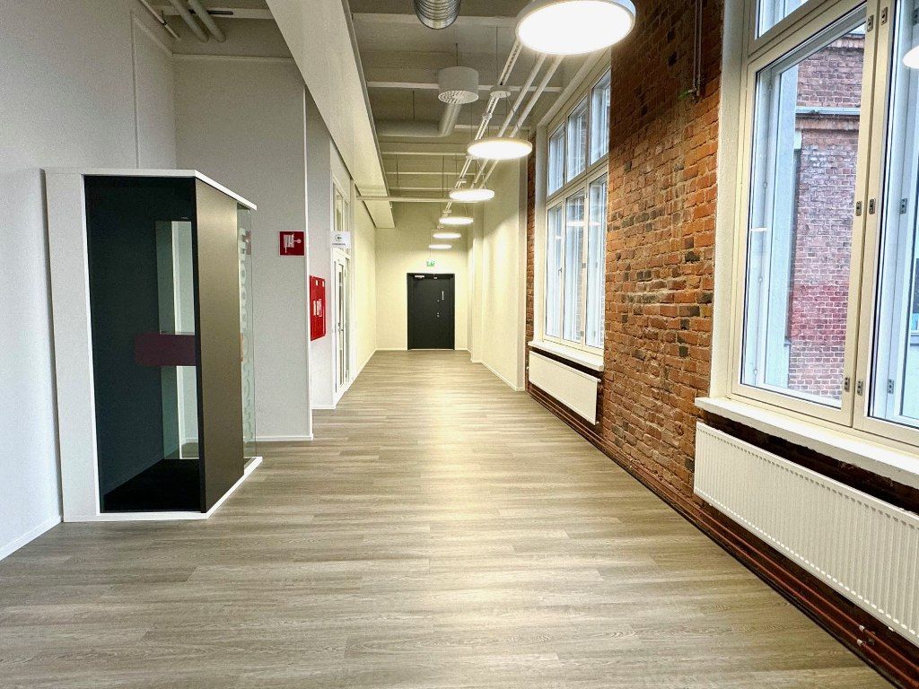 Tilaan on mahdollista rakentaa esim. lisää toimistohuoneita ja/tai hiljaisia tiloja. Käytävällä on yhteiskäytössä oleva puhelinkoppi.