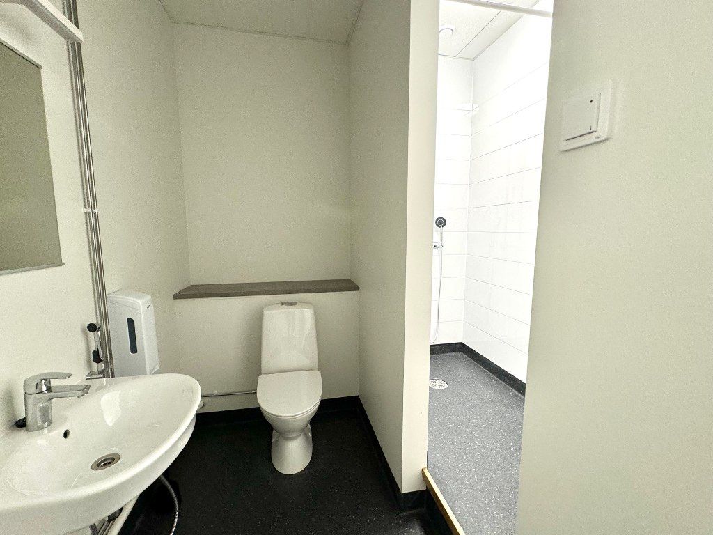 Toimistossa suuri avotila, erillinen neuvotteluhuone, 2x wc, suihku, siivouskomero ja keittiö. Lisäksi lukollinen serverikaappi, ovipuhelin ja kaukosäätimellä toimivat, lämpöä hylkivät kaihtimet.