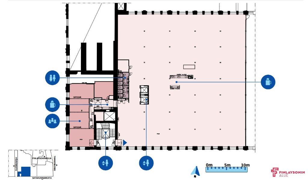 Finlaysonilla, Siperiassa, vapaana tilava toimitila. Korkeaa ja avaraa tilaa jossa muutamia huoneita ja sosiaalitilat. Hissillä pääsee suoraan tähän tilaan. Kooltaan tila on 1358 m2. Tilasta on näkymät pääosin Satakunnan kadun suuntaan.