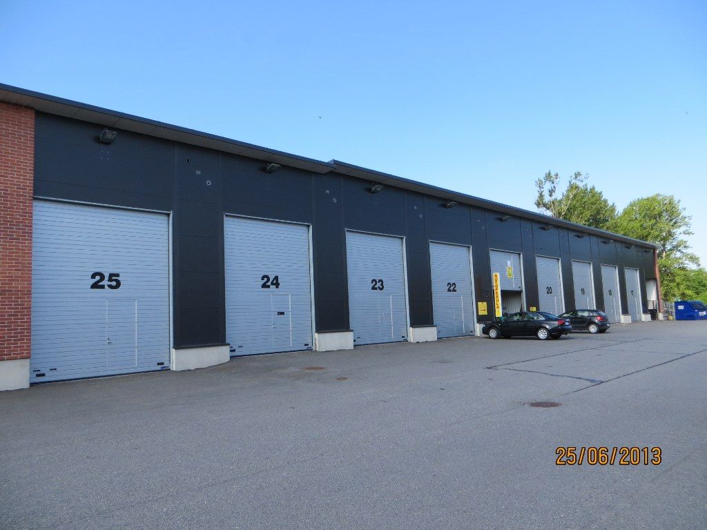 Tilassa on nosto-ovi, jossa myös erillinen käyntiovi, mikä helpottaa kulkua ja tavarankäsittelyä.