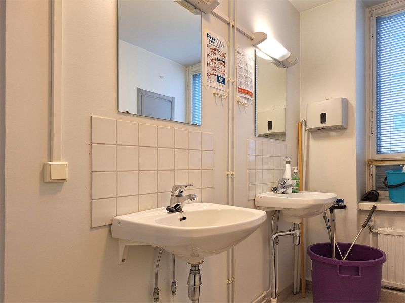 Kunto, varusteet ja palvelut: Peruskuntoinen tila, toimistohuoneita, avointa tilaa, keittiö ja wc-tilat + siivouskomero, lastauslaituri, henkilö- ja tavarahissi.