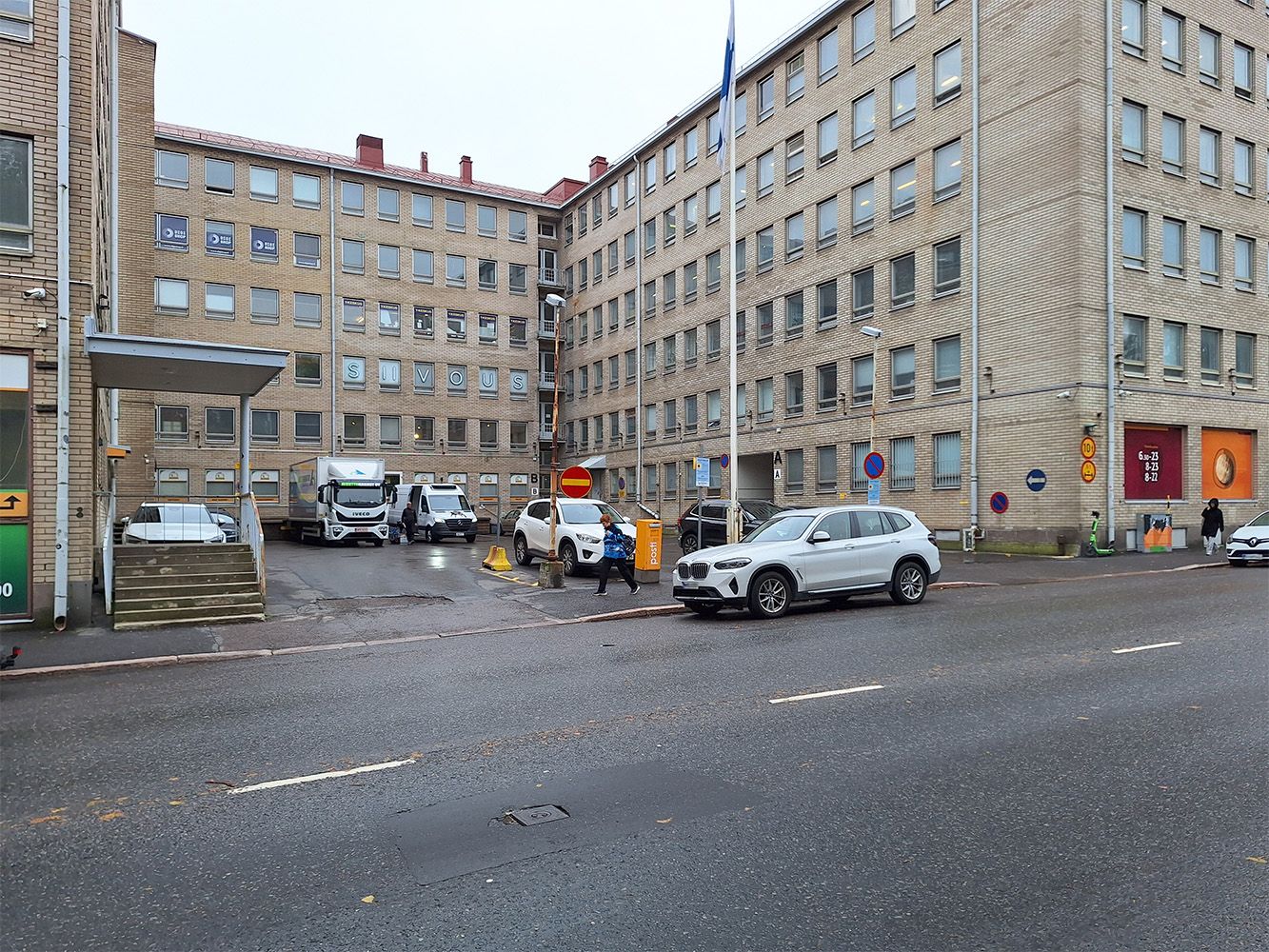 Pysäköinti: Rakennuksen parkkipaikalla on niukasti paikoitustilaa