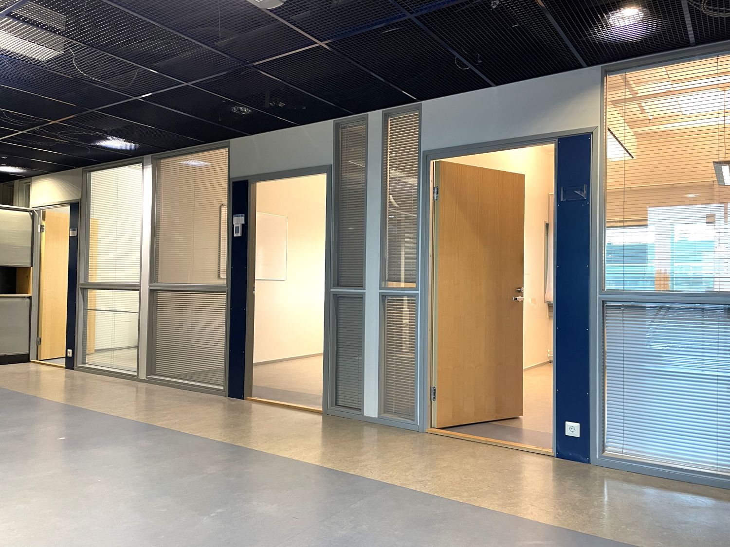 3. kerroksen toimistossa on avotilaa, 3 erillistä toimistohuonetta ja yhteiskäyttöiset keittiötilat (pohjakuva liitteenä). Jyvitetty neliömäärä on 82,5m2. Vuokralaisen käytössä on isot sosiaalitilat, missä suihkut ja pukukaapit. Tila on rakennuksen korkeammassa siivessä, ja huoneet ovat Lentokentäntien puolella. Pihassa on vuokrattavissa hyvin autopaikkoja, ja paikalle on helppo tulla.