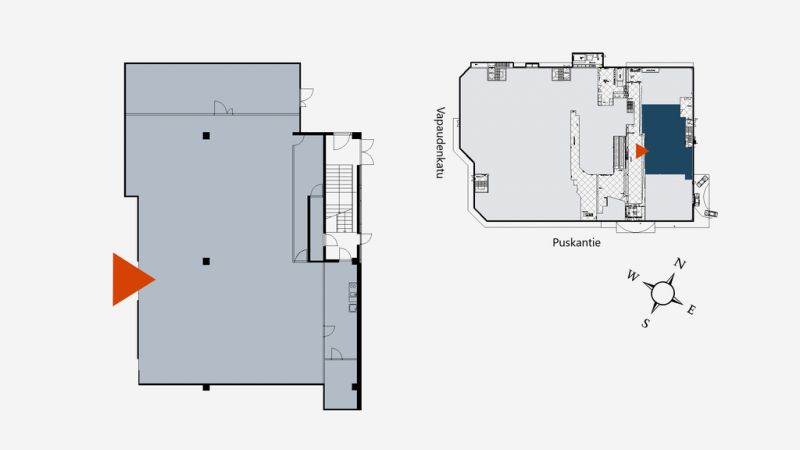 Tämä 378 m² liiketila sijaitsee kiinteistön 1. kerroksessa. Tilaan kuuluu minikeittiö. Ei sovellu ravintola-, kahvila- tai kampaamotoimintaan. This premise is not suitable for a restaurant, cafeteria or a barber shop.