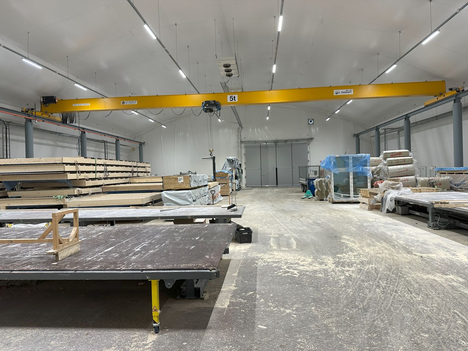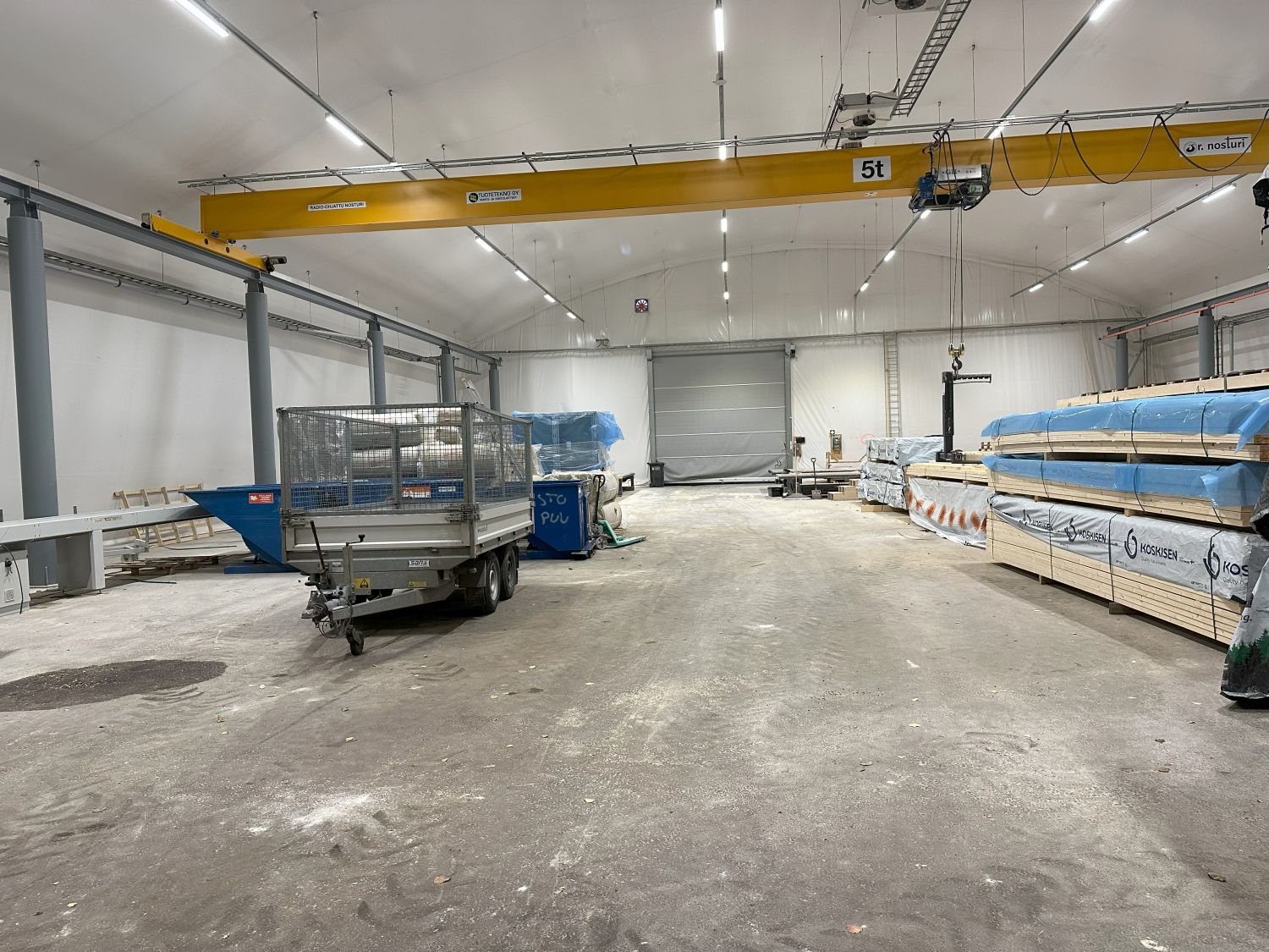 Päätuotantorakennus: n. 1598htm2 sis tsto/sostilaa n. 244m2+pesutila 79m2 ja 2 asuntoa 3.kerroksessa 161m2. Halliosan tuotantotila n. 1114m2. Korkeus n.8m , ei pilareita välissä, tehokas avara, talotehtaan tuotantoa aiemmin. Siltanosturi 6,3tn. 4x nosto-ovi (josta 1 on 7m!!) Päädyssä tsto/sostilaa ja asuntoa/saunaa ( 2kpl) joihin käynti erikseen myös ulkokautta. Puurunko. Vesikiert lattialämitys, maalämpö, koneellinen IV lämmön talteenotolla. Savunpoisto/automaattiluukut ja palohälytysjärjestelmä. Hallin voi jakaa 4 osaan, omat varaukset ( viemäri, sähkö, lämpö). Lattiakaivot.