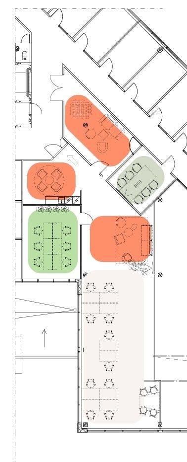 Kolmannessa ja neljännessä kerroksessa on tarjolla uudenlaista yhteisöllistä toimistotilaa. Yritysten käytössä on tyylikkäät ja viihtyisät aula- ja taukotilat keittiöineen. Toimistotilojen lisäksi kohteessa on pienempiä studioita sekä erilaisia neuvottelu- ja projektityötiloja.
