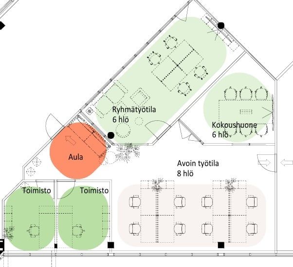 Nyt vapaana siisti toimitila neljännessä kerroksessa. Tilassa on sekä avotilaa että työ- ja neuvotteluhuoneita sekä aula.