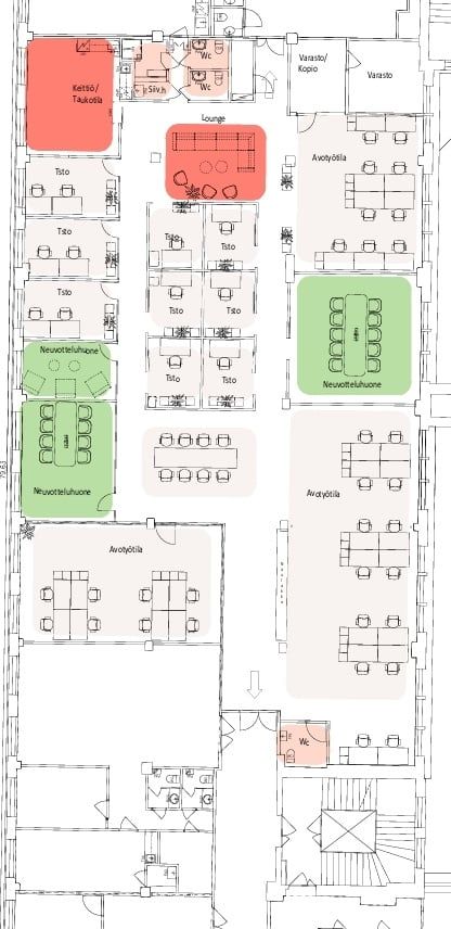 Nyt vuokrattavissa tehdashenkistä toimitilaa Punavuoressa. Tilassa on runsaasti avotilaa sekä monia eri kokoisia työ- ja neuvotteluhuoneita. Lisäksi tilasta löytyy hyvän kokoinen lounge-alue, keittiö ja wc-tilat.