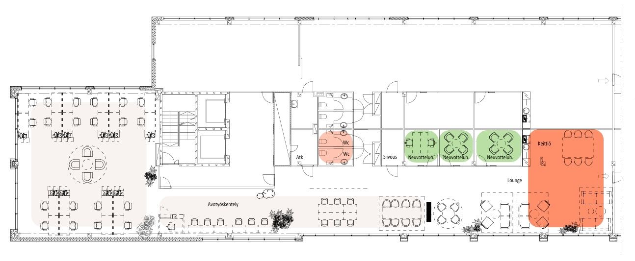 Valoisa toimisto nyt vuokrattavissa Ruoholahdessa. Tässä toimistossa on iso avotila ja muutama pienempi neuvotteluhuone. Lisäksi toimistossa on lounge keittiöllä sekä wc-tilat.