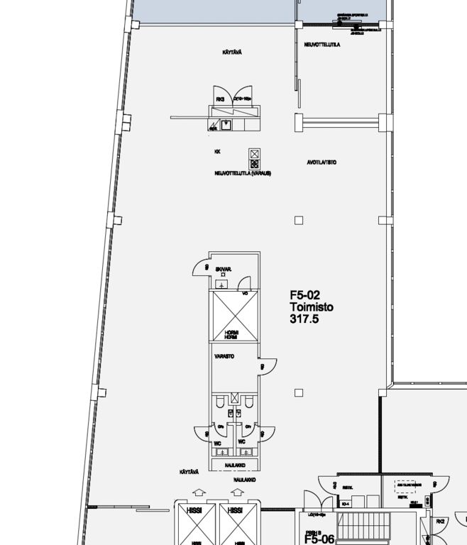 Tämä monitoimitila on kooltaan 317,5 m², ja se sijaitsee kiinteistön 5. kerroksessa. Toimisto on avonainen, ja siihen kuuluvat omat wc- ja keittiötilat. Kuvat ovat esimerkkejä kiinteistön mallitoimistosta.