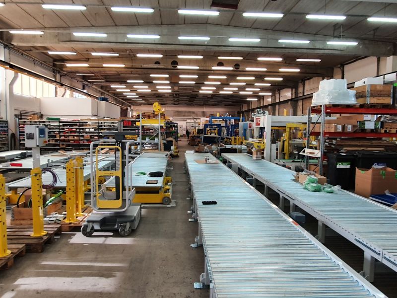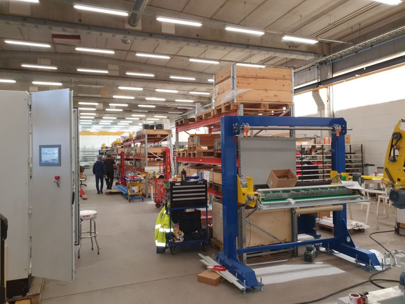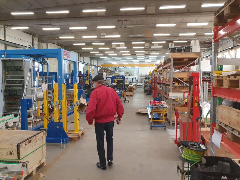 Hallissa on sisäkorkeus 6 m. 11 Nosto-ovea 5x4,4-5,0m. Hallissa on siltanosturi 2x2tn 65metrin radalla.