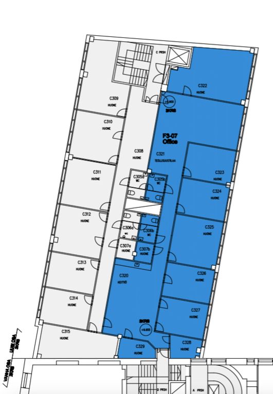 Tämä 262 m² tila sijaitsee 3. kerroksessa kiinteistön uudemmalla puolella. Tila on pääosin huoneellista, ja siinä on oma keittiö ja wc:t. Tila on mahdollista kunnostaa uudelle vuokralaiselle.
