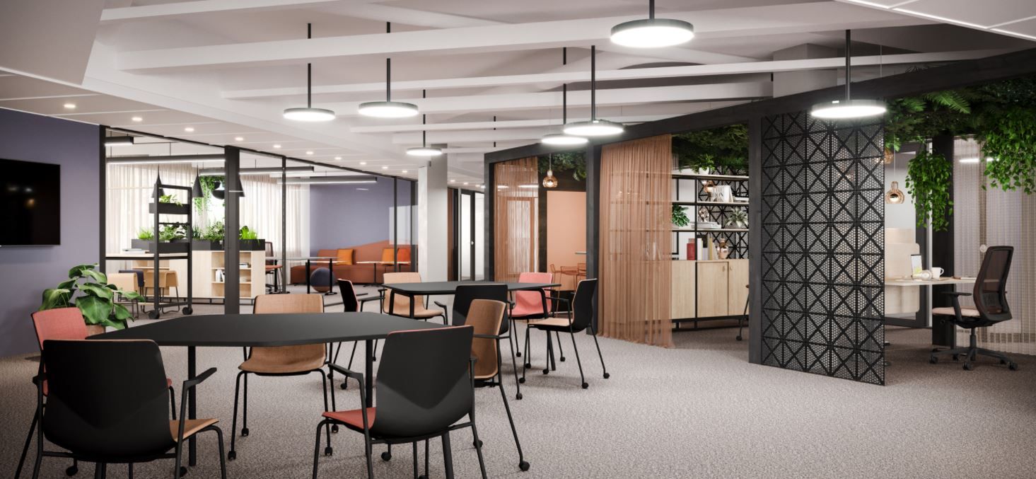 Valoisa toimistotila, josta näkymät kolmeen eri suuntaan. Tila jaettavissa esim. 250 m2 ja 500 m2. Ohessa havainnollistavia kuvia.