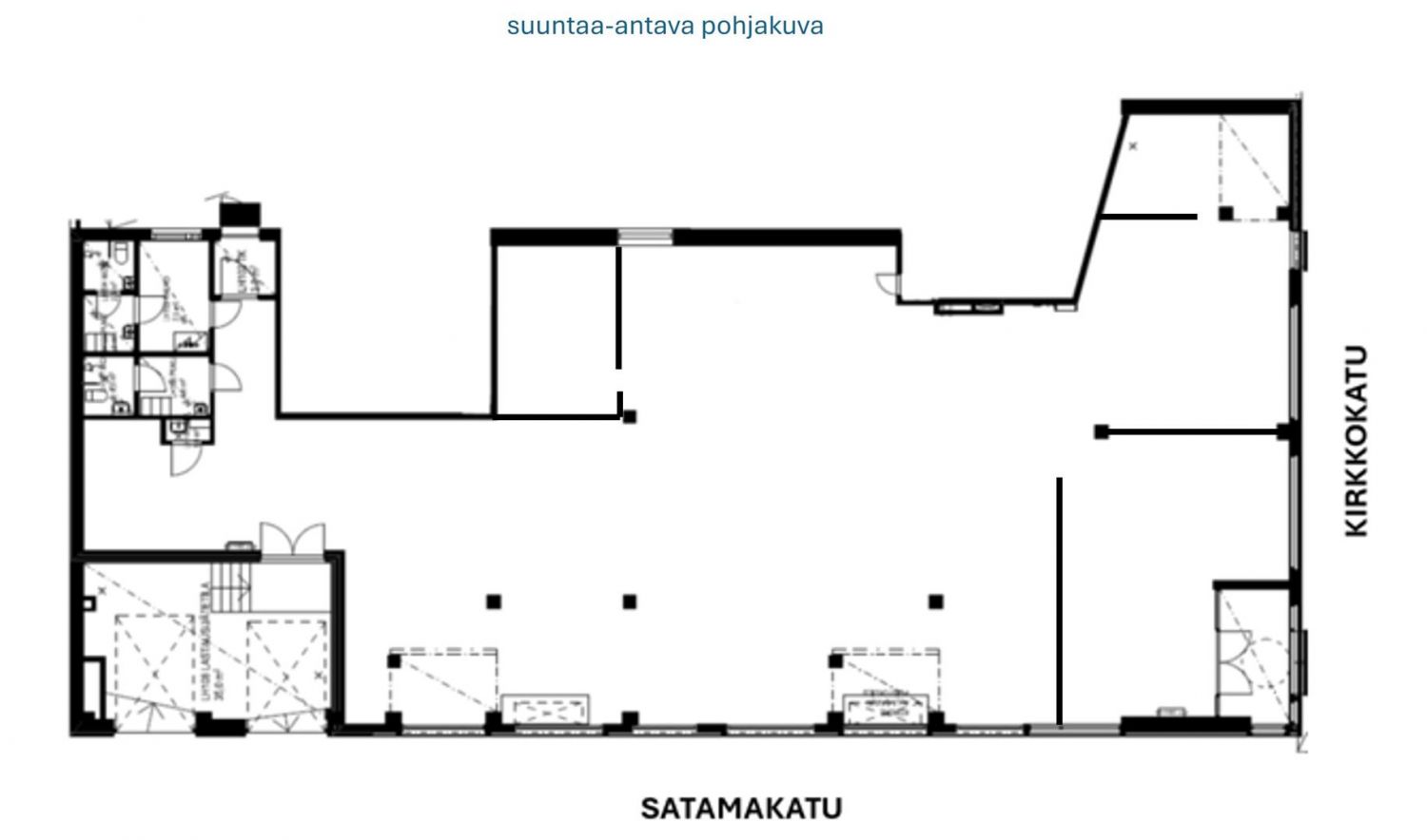 Vuokrattavana Satamakadun ja Kirkkokadun risteyksessä olevasta kiinteistöstä tasokas liikehuoneisto.