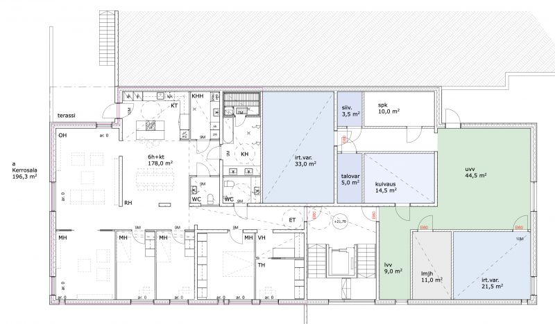 Tila nykyisellään 179m2 suuruinen toimistokäytössä oleva huoneisto, käytännössä 3 kerroksen tontti. Rakennus sijaitsee rinteessä, joten kohteella on myös pihaterassi.