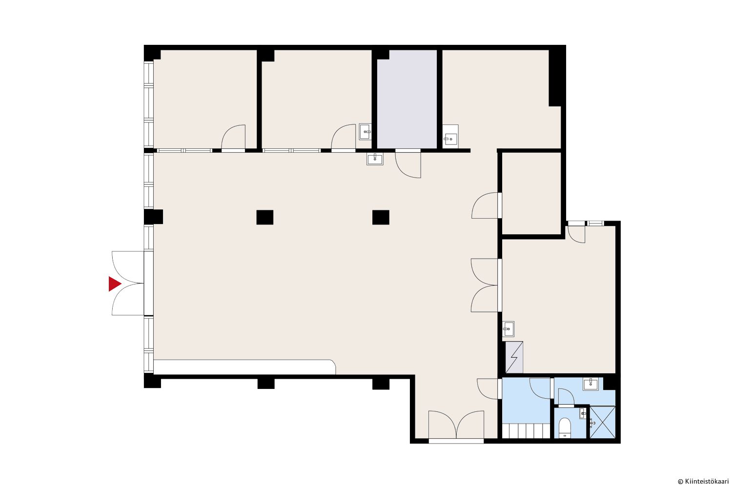 Lisäksi tilassa on oma sisäänkäynti katutasossa, joka tekee logistiikasta vaivatonta.