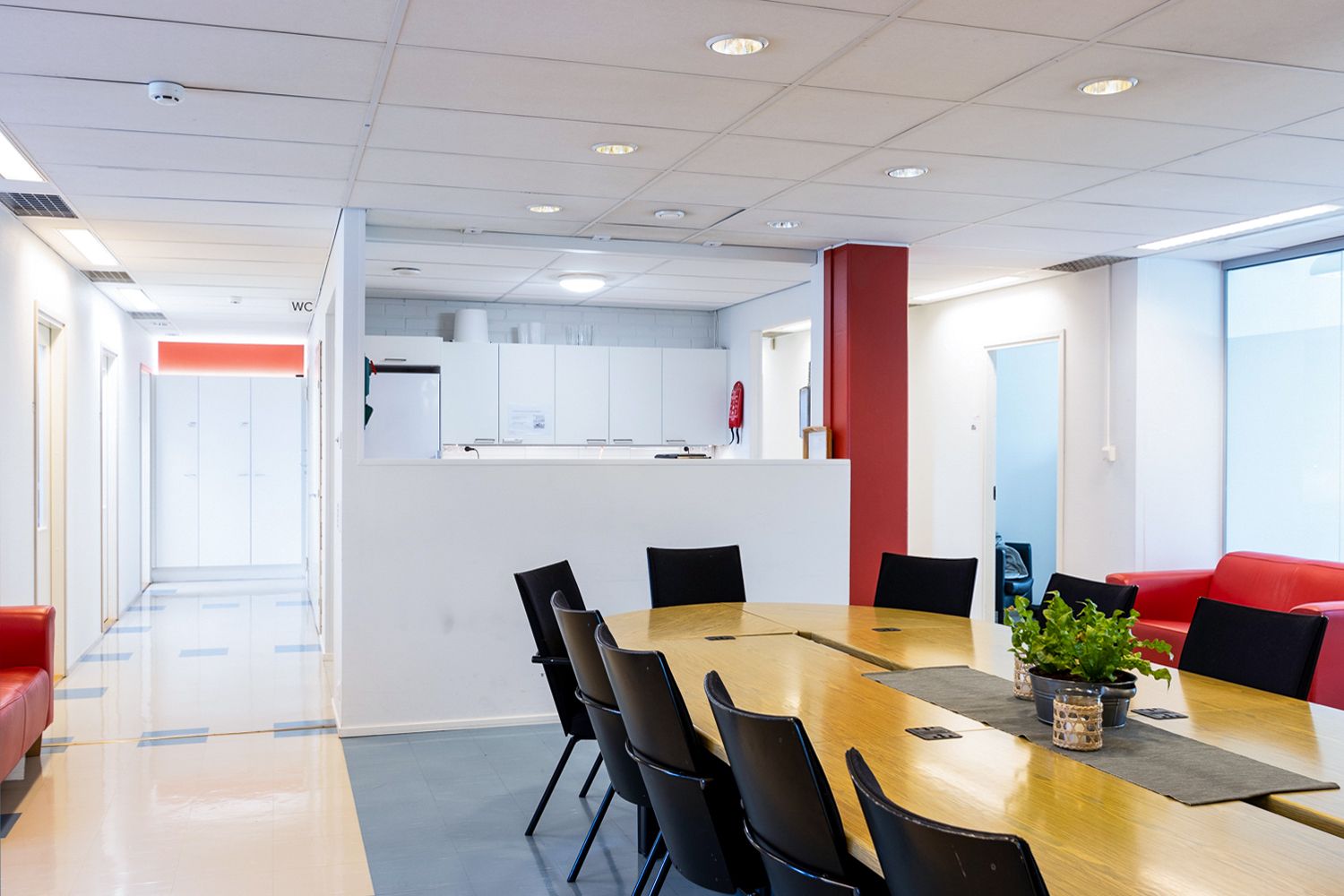 Ensimmäisen kerroksen siisti toimistotila. Toimisto koostuu avotilasta, viidestä työhuoneesta, kahdesta neuvottelutilasta sekä keittiö- ja wc-tiloista. Ilmoituksen kuvat ovat esimerkkikuvia rakennuksen muista tiloista.