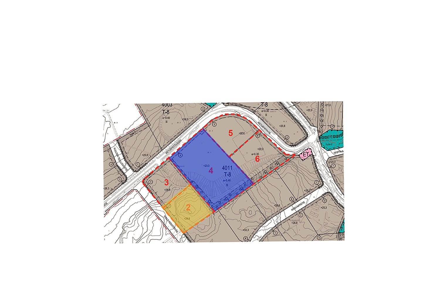 Tonttien korttelialue on kaavakartassa numero 4011. Kaavamerkintä on T-8 e=0,4 II eli teollisuus- ja varastorakennusten korttelialue.